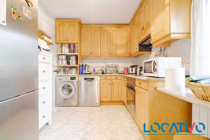 Al final del pasillo tenemos la cocina muy luminosa. que tiene salida directa a la zona de la piscina.