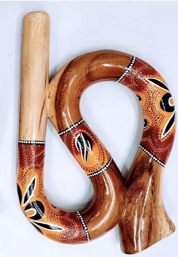 Digiredoo de Madera en forma de S, este instrumento musical esta pintado a mano.