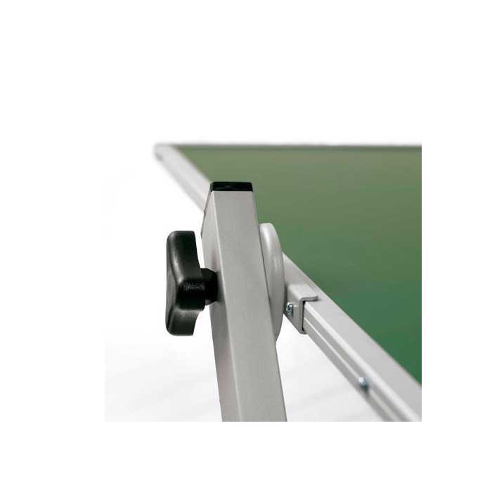 Pizarra verde volteable doble cara enmarcada con perfil de aluminio anodizado en color plata mate y cantoneras redondeadas de plástico gris. Superfici ...e doble para escritura con tiza. Estructura metálica móvil provista de 4 ruedas (2 de ellas con freno). Incluye cajetín reposarrotuladores de 100 cm.