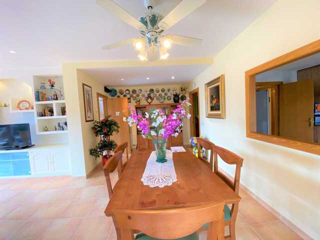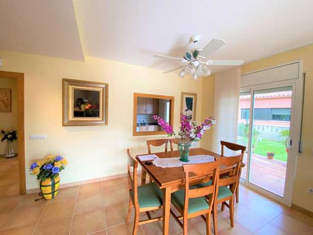 Está distribuida en salón comedor con salida a la terraza, unos grandes ventanales que aportan gran luminosidad a la casa, amplia cocina independiente con salida al porche con zona barbacoa fantástica y un jardín con una piscina de 28m2 con limpiafondos incorporado.