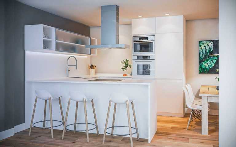Vallespir 26 es una promoción pensada para parejas y familias jóvenes que quieren vivir en una vivienda de obra nueva que equilibre el uso de la tecnología integrada en el hogar con un diseño contemporáneo con acabados de calidad media-alta agradables y bien ejecutados: Cocinas de diseño minimalista y elegante; iluminación con LED en lugares seleccionados para crear ambientes cálidos; suelos de laminado de madera; puertas lacadas en blanco; paredes y techos en color blanco y color a elegir en paredes seleccionadas. Baños de diseño impecable con suelo de gres porcelánico, griferías de gama alta, inodoro suspendido en baño principal y plato de ducha enrasado con mampara fija de una hoja. Las carpinterías exteriores Cortizo con cristal con aislamiento termoacústico y la climatización y el agua caliente por aerotermia, garantizan de forma combinada un excelente desempeño en ahorro energético. Por último, solución domótica para el control de la iluminación y las persianas motorizadas.