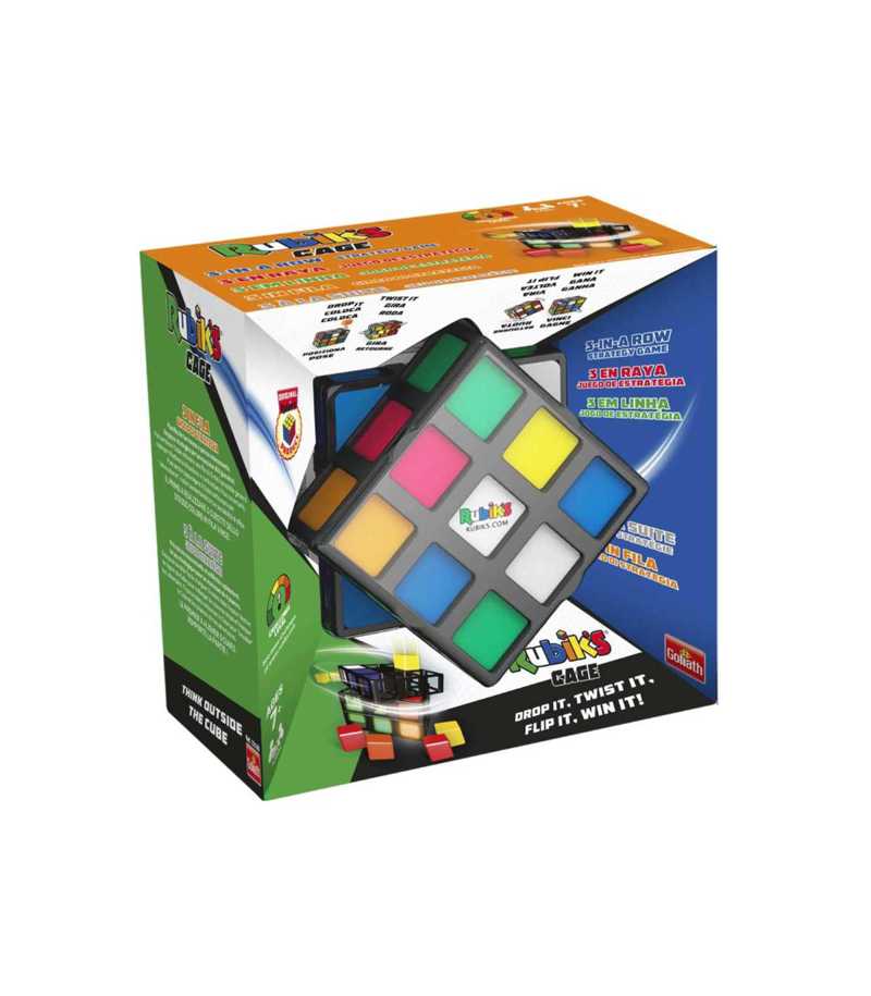 ¡COLOCA, GIRA, VOLTEA, GANA! ¡Es el cubo de Rubik's 3 en raya! Un juego de estrategia en el que no necesitas saber resolver el famoso cubo de Rubik's, ... solo necesitarás utilizar tu inteligencia para ganar a tus rivales siendo el primero en hacer 3 en raya. Tú decides si colocas un nuevo cubo, giras una cara o le das toda la vuelta al cubo. Concéntrate y elige bien tu movimiento, porque cuando estés a punto de conseguirlo otro jugador puede darle la vuelta al cubo o girar una cara y cambiarte tu estrategia. ¡Un 3 en raya nunca fue tan divertido! ¡Atrévete con lo nuevo de Rubik's! Un juego rápido y divertido perfecto para jugar con amigos y en cualquier parte. Haz tu movimiento y lanza el cubo por los aires para que lo atrape otro jugador. ¡Ahora es su turno! ¡Que no se te adelanten! Reta a tu mente y a tus amigos y conviértete en el ganador de Rubik's Cage. De 2 a 4 juagadores. A partir de 7 años. Contenido: Rubik's Cage, 24 Cubitos de 6 colores distintos e instrucciones.Show more