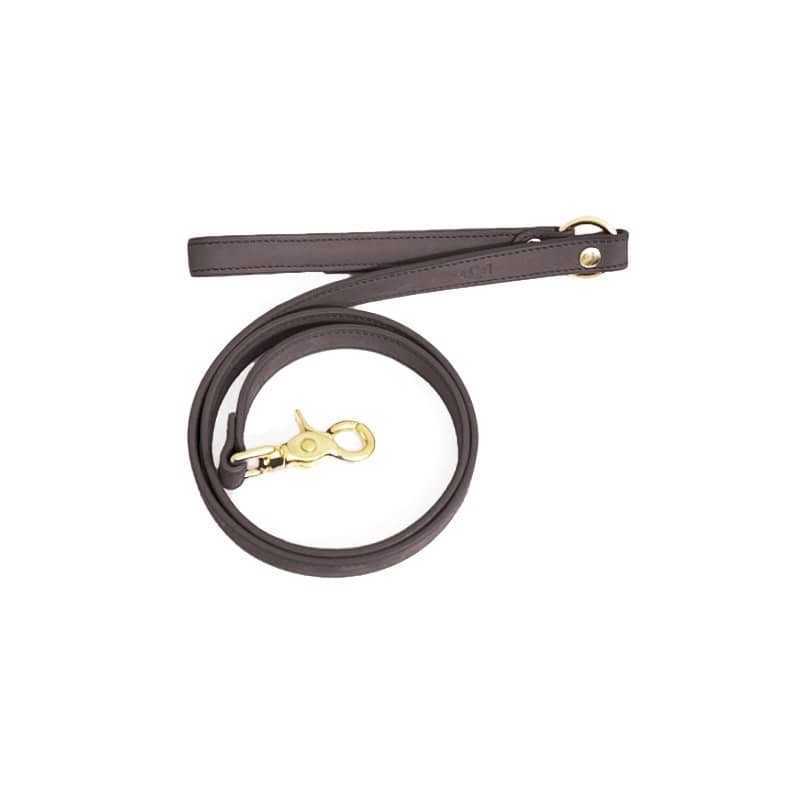 Correa de nobuck para perros en color café a contraste con sus herrajes y hebilla de latón dorados