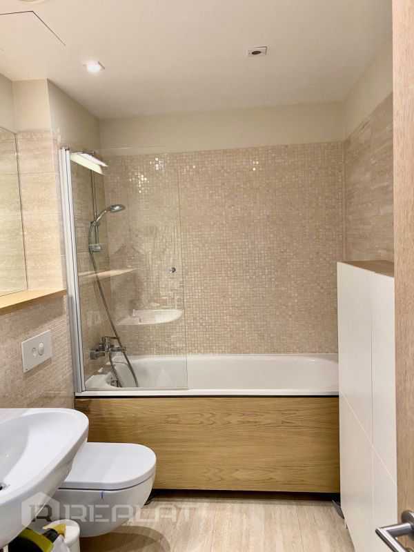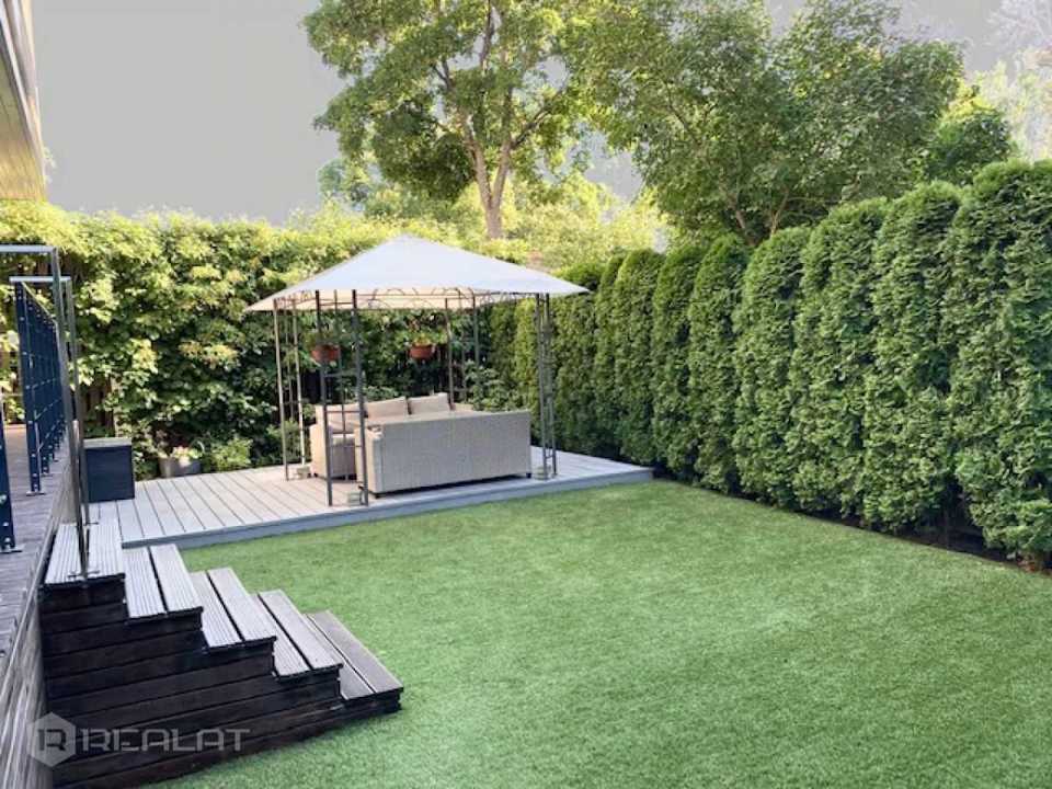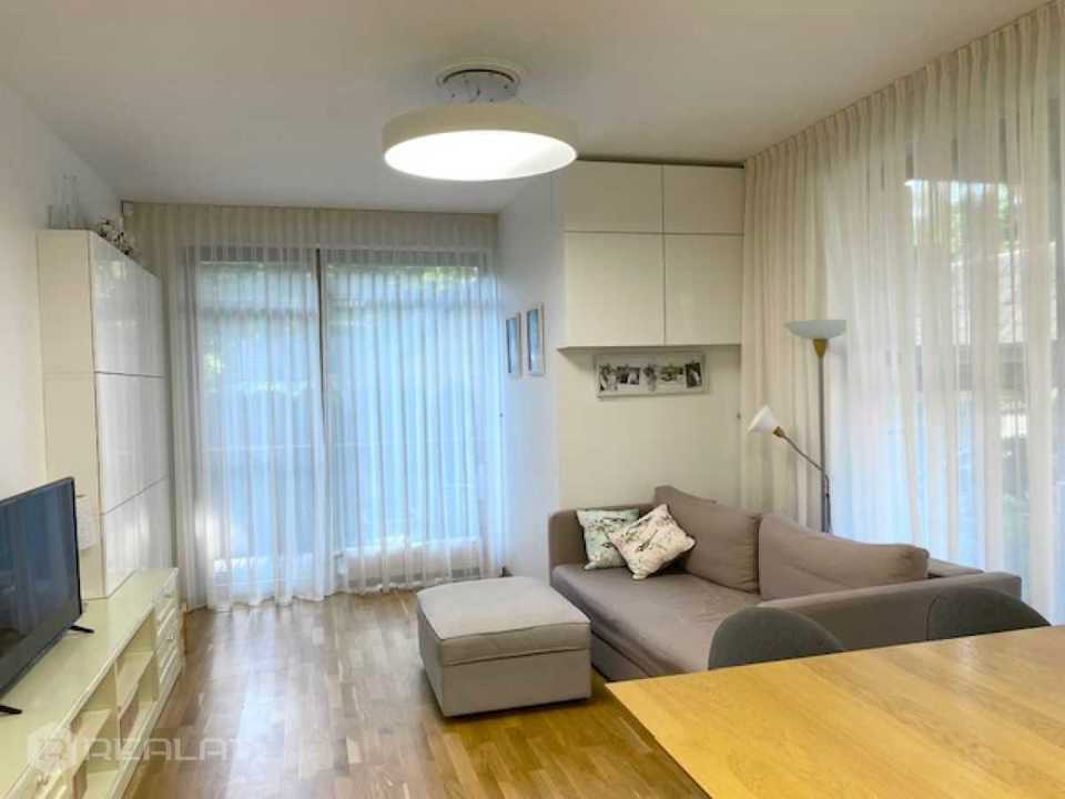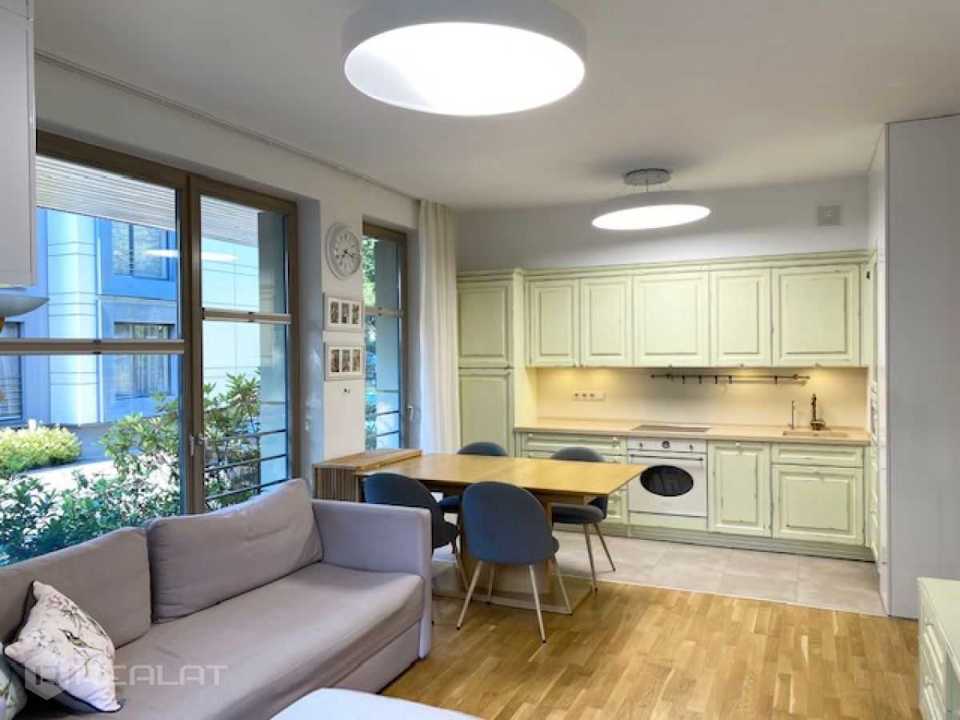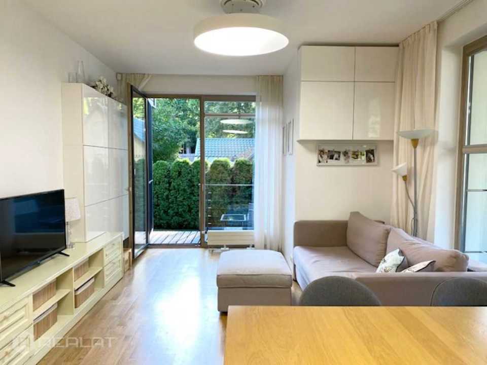 The apartment is located on the 1st floor, has access to its own plot, located on the south side and equipped with decking, lawn and garden furniture. The apartment has: panoramic windows - wooden double-glazed windows, heated floors in the bathroom, wooden parquet floors, all the necessary built-in furniture and appliances. All rooms are isolated, two bathrooms. The house was built in 2012. Gas boiler for home. Adequate utility bills. There is 1 parking space in a closed courtyard.