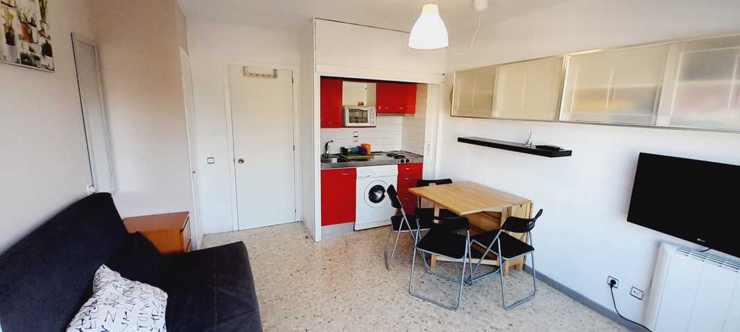 Este coqueto apartamento se distribuye en pequeño recibidor, salón-cocina amplio con salida a la terraza, cuarto de baño con bañera y una pequeña habi ...tación con armario empotrado.