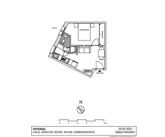 Tiene 36 m2 construidos distribuidos en salón con cocina integrada, dormitorio y baño con ducha.