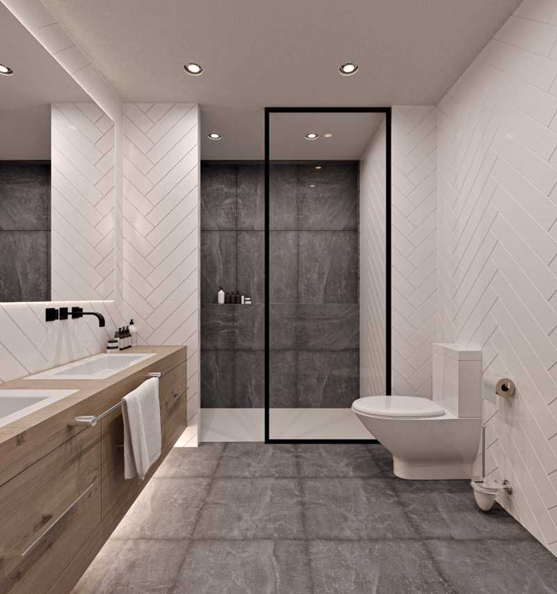 Suelos de parquet laminado color madera roble, con lámina acústica antiimpacto y gres cerámico en baños.