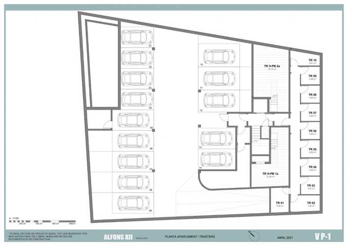 Planta sótano con plazas de aparcamiento y trasteros.
