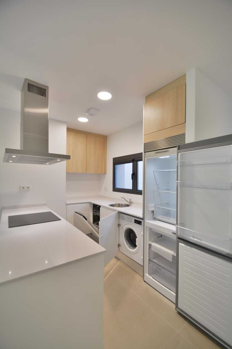 -Equipamiento completo de cocinas con electrodomésticos Balay, lavadora y lavavajillas panelados, frigorífico cromado, horno eléctrico, vitrocerámica y campana extractora