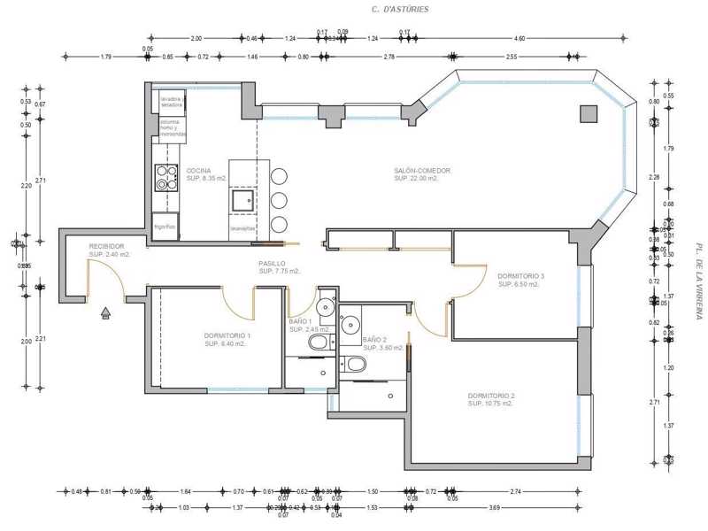 Te gustará saber: Este amplio piso se encuentra a reformar y te adjuntamos imagen de un posible proyecto de reforma. Encontrarás adjunto también un pl ...ano de la distribución actual así como una propuesta de nueva distribución. Al ser un piso esquinero con calle Asturies tiene mucha luz con amplios ventanales.