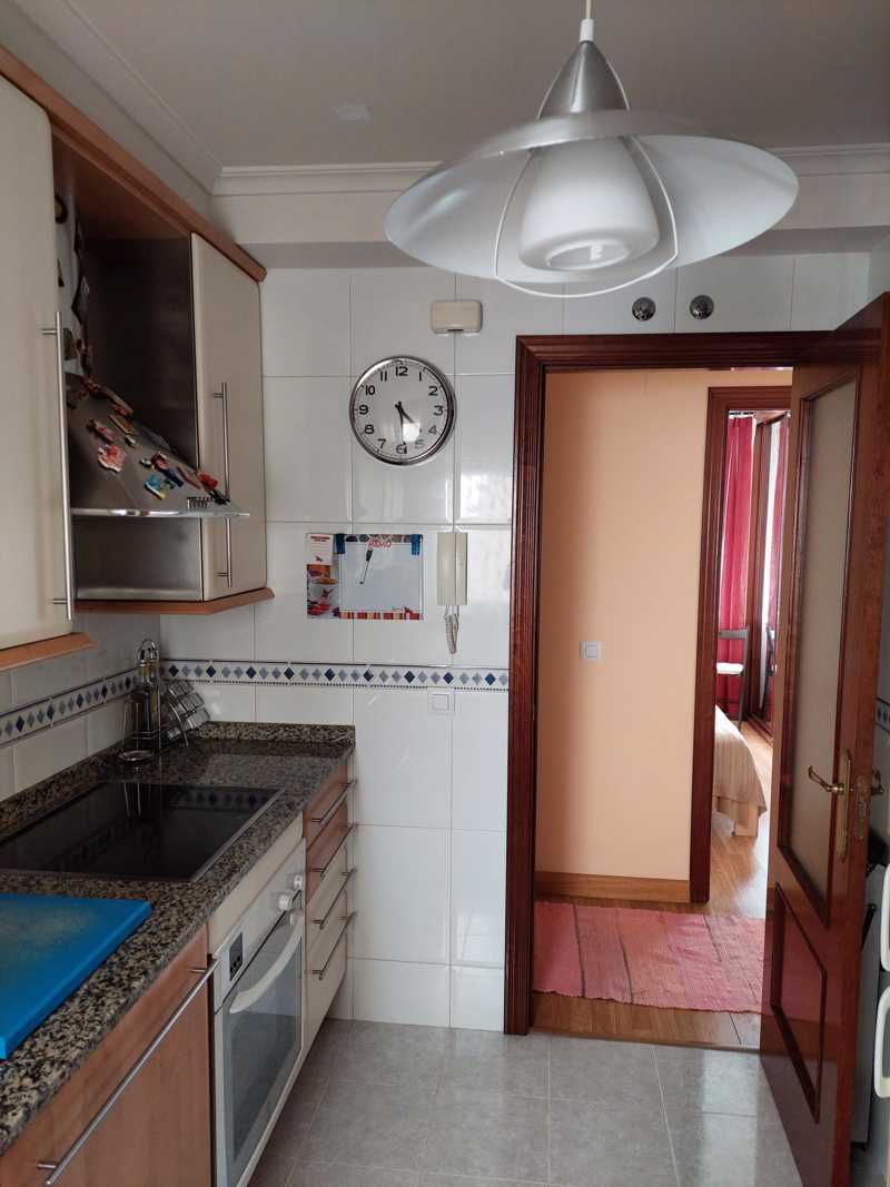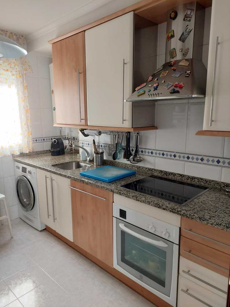 La cocina con ventana a patio de luces está completamente equipada con acabados de alta calidad, encimera de piedra natural y electrodomésticos de marcas Balay y Teka.