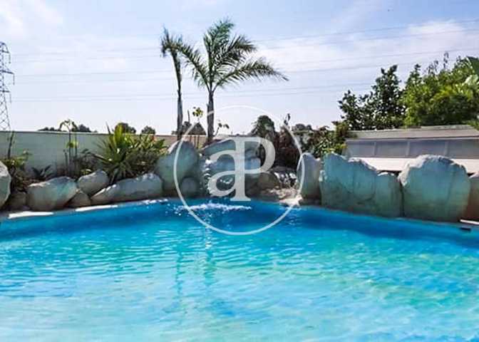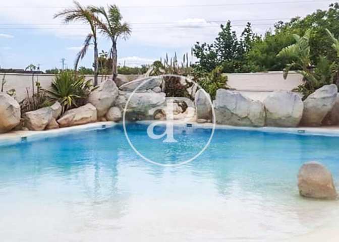 Chalet en el Vedat de Torrente, una propiedad de aproximadamente mil metros de parcela, con una piscina tipo playa diseñada por los arquitectos del Bi ...oparc de Valencia y un jardín estilo tropical con piedras decorativas, con iluminación, riego por goteo y controlado por domótica.