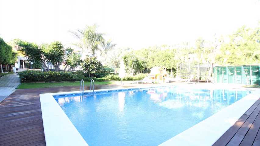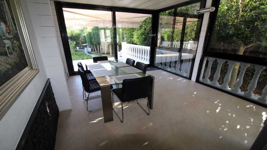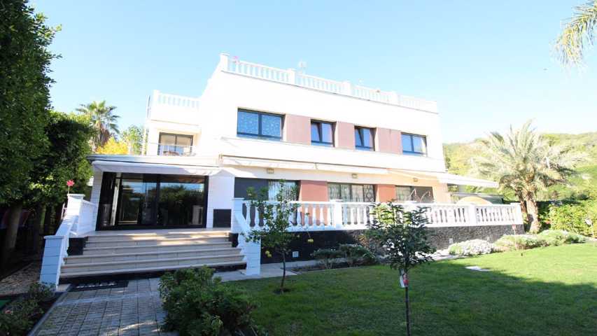 Impresionante villa en la zona más exclusiva de Sitges, Can Girona. Nos brinda todos los lujos y comodidades que uno puede desear. Un extenso jardín c ...on piscina, zona de juegos, y amplias terrazas para disfrutar al aire libre. El cuidado empleado en la construcción de esta casa se percibe en todo momento. La entrada de la casa nos deleita con un amplio recibidor que se abre a un espacioso y muy luminoso salón comedor con salida a la terraza de 30 m2 y el jardín. Avanzando por un amplio pasillo nos encontramos un dormitorio doble, un dormitorio que actualmente sirve como despacho con acceso a la terraza, un aseo de cortesía y una amplia y moderna cocina vintage. Esta planta la completa un acogedor comedor de verano conectado con un totalmente equipado apartamento de invitados. En la segunda planta encontramos la zona de noche. 2 dormitorios en suite con vestidor, uno de ellos con salida a una terraza privada, 2 dormitorios dobles y un baño completo ofrecen suficiente espacio para acomodar a una gran familia. En la planta superior encontramos uno de los mayores gozos que ofrece esta casa, un espectacular solárium de 70 m2, con vistas al mar, montaña y el pueblo de Sitges. Para completar la gran funcionalidad y calidad de esta villa, en el sótano nos encontramos espacios muy útiles como el cuarto de servicio con baño, sala de juegos, lavadero y acceso al gran garaje para 3 coches. Una villa excepcional en la que tendrá el lujo, comodidad y el mar al alcance de su mano.[IW] Show more