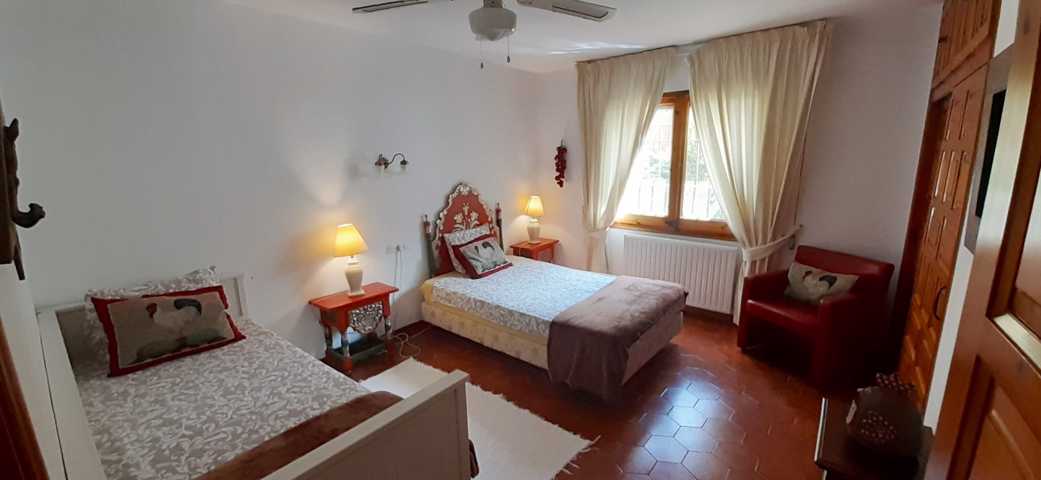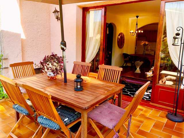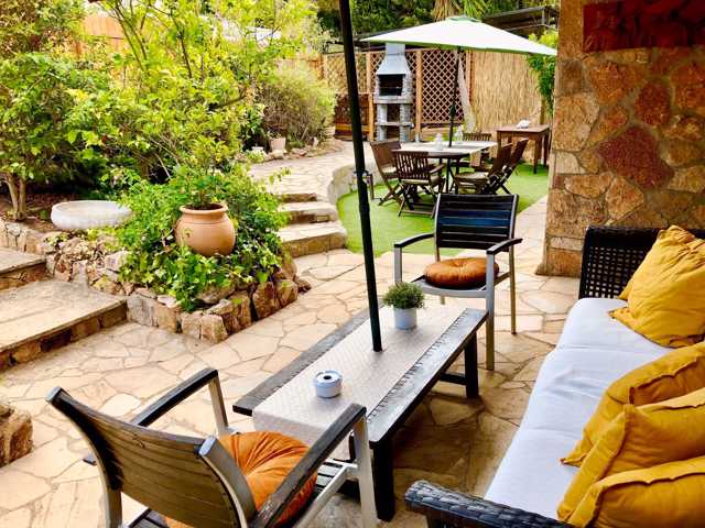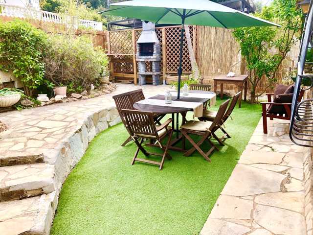 - Casa principal (112 m2 útiles + 20 m2 de terraza): 3 habitaciones, salón comedor, cocina, 2 baños, terraza y jardín vallado con barbacoa de obra. Zona de parking cubierto con porche. Entrada independiente a pie de calle.