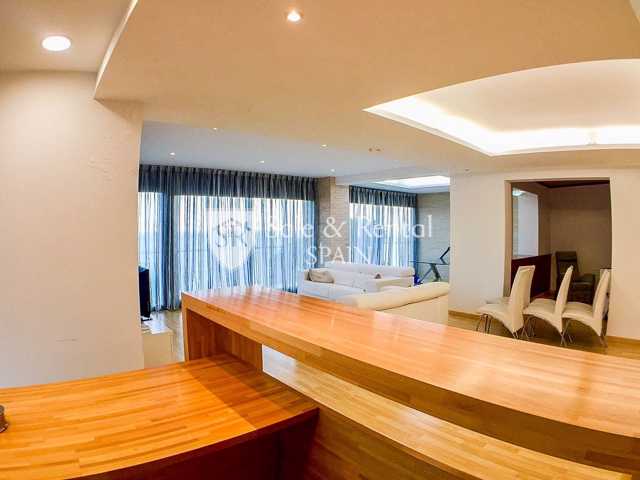 En la planta principal, hay un gran salón con ...grandes ventanales que nos ofrecen unas fabulosas vistas panorámicas del puerto y el mar. Hay una gran cocina americana, totalmente equipada, con salida directa a una gran terraza ideal para disfrutar de sus comidas o para relajarse con sus preciosas vistas al mar. Aquí encontramos también una suite y zona de lavandería.