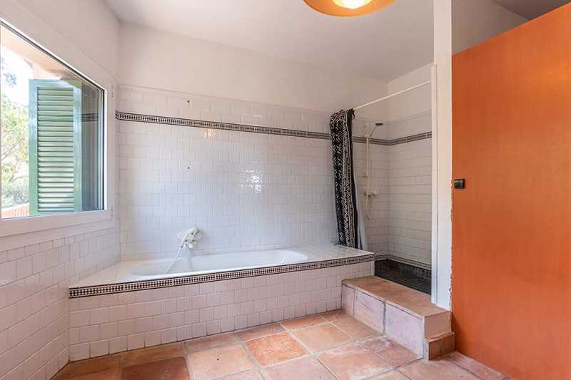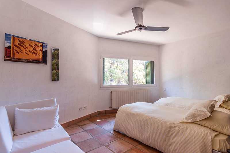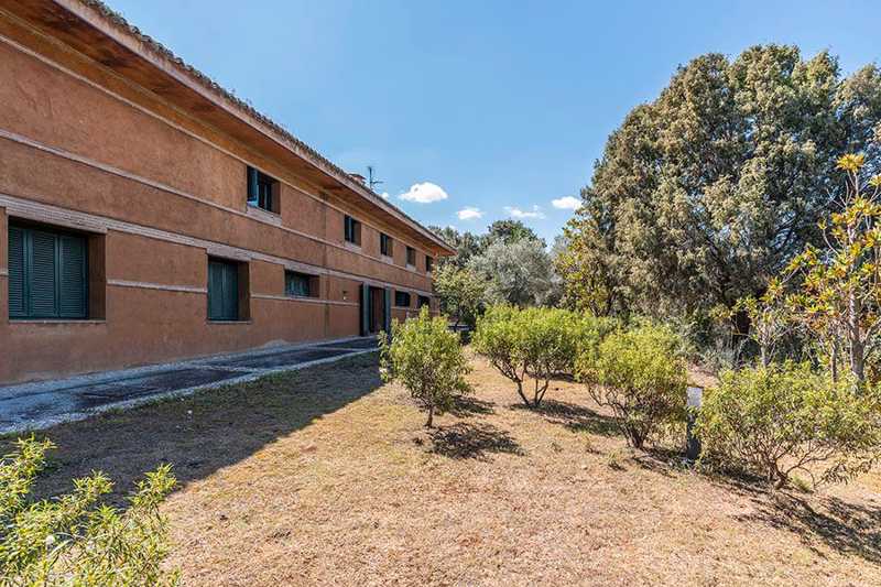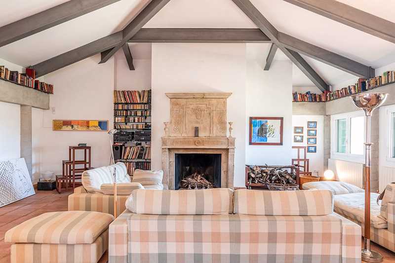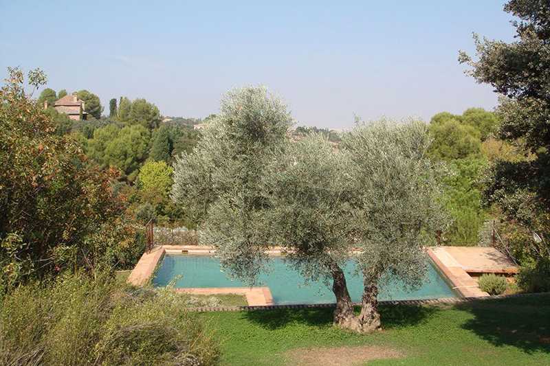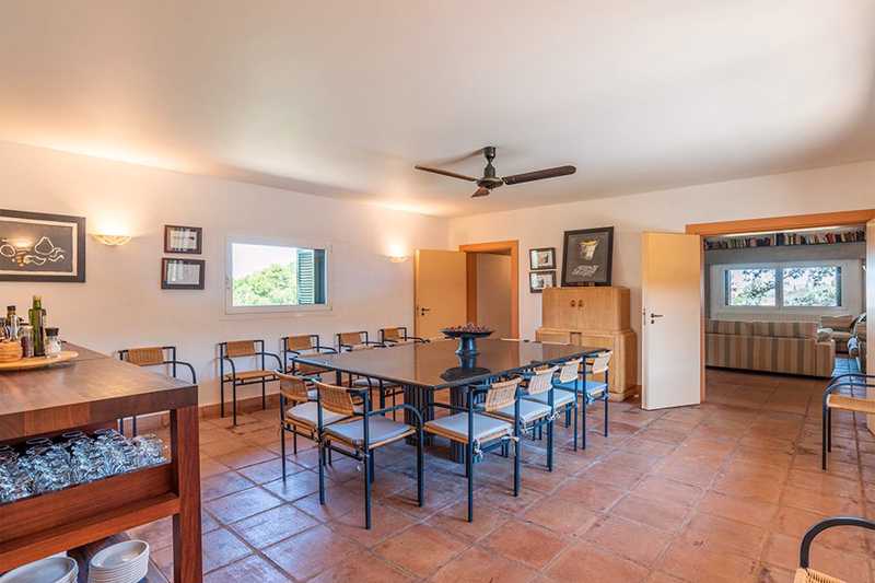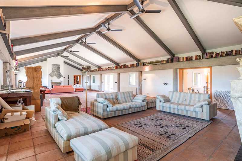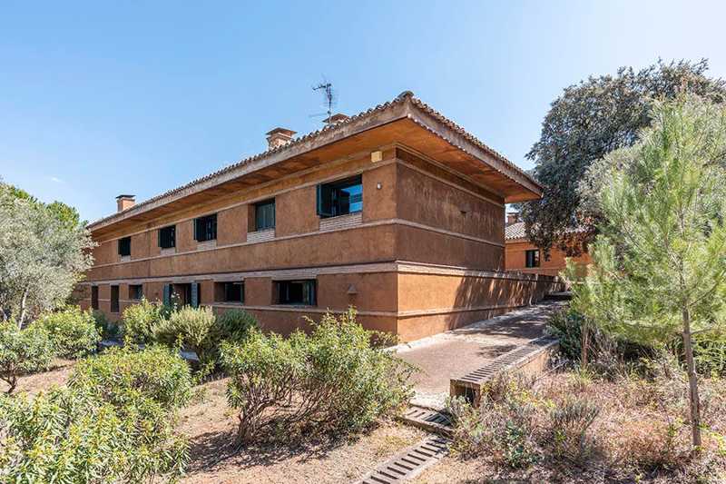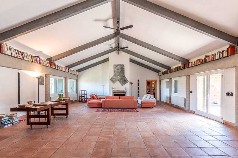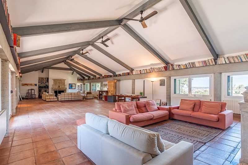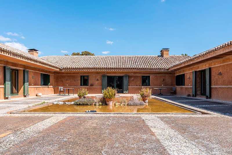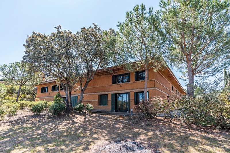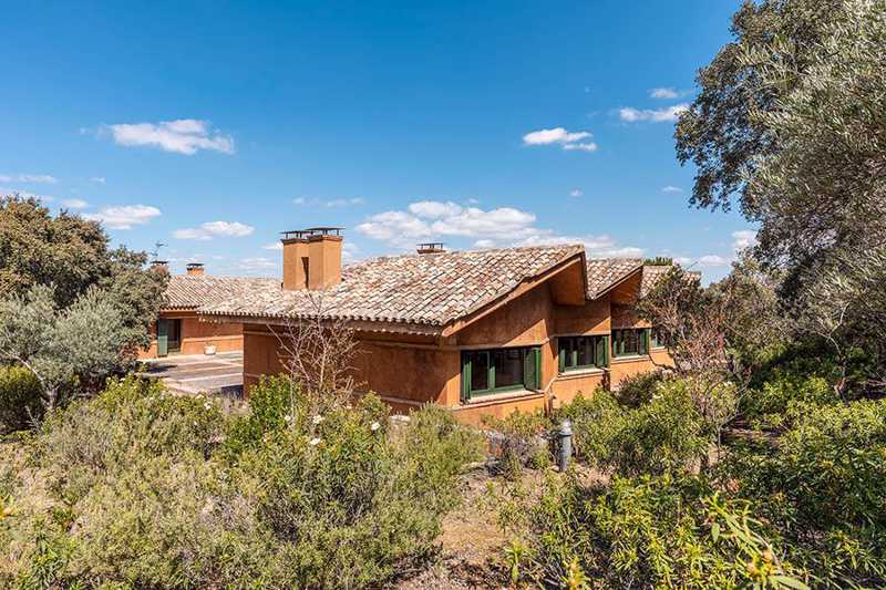 La edificación, de 860 m², está rodeada por más de cinco hectáreas de campo, donde crecen libremente olivos, enebros y otras especies locales. Su estilo arquitectónico se integra perfectamente en el entorno.