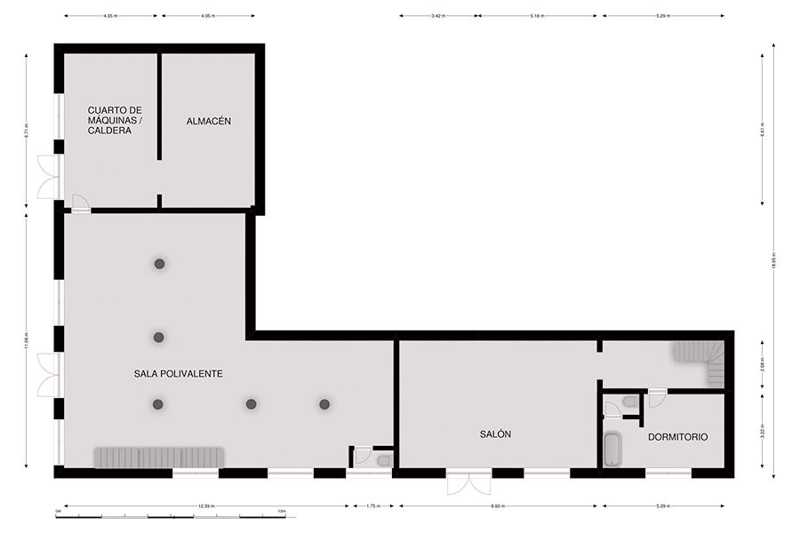 •Un cuarto de calderas y un almacén.