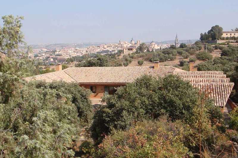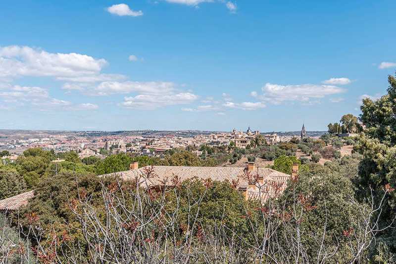 Situado en el Cerro del Emperador, junto a un meandro del río Tajo, la finca ofrece una espectacular vista del Toledo monumental.