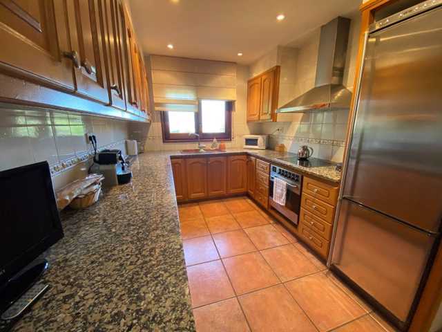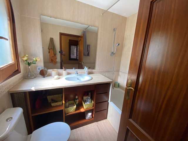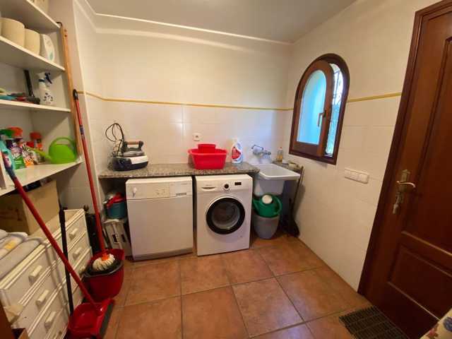A l´étage supérieur, environ 150m2, se trouve la maison. Il se compose d´une belle et spacieuse partie de jour où l´on retrouve le salon-salle à manger avec une cuisine semi-ouverte et le lavoir. Le salon a une sortie sur une terrasse fraîche avec vue dégagée. La partie nuit comprend 4 chambres avec placards et 2 salles de bains.