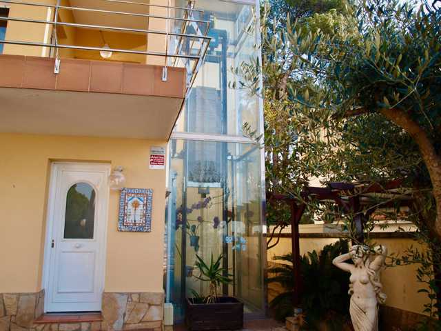 -en la planta primera, hay un apartamento independiente, que tiene un salón-comedor con cocina americana, 3 habitaciones, baño con ducha, y salida directa al jardín y piscina. a esta planta se puede acceder tanto por las escaleras de acceso como por ascensor.