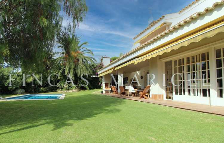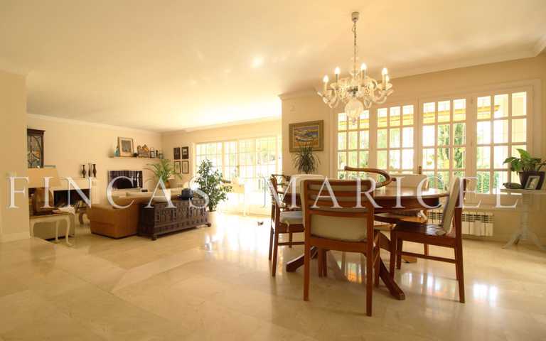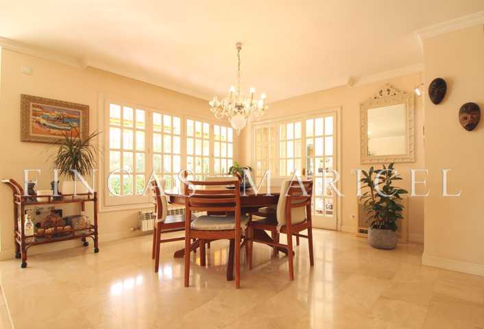 En la planta principal se sitúa la cocina, que tiene salida directa a la zona de barbacoa, porche y piscina, y un amplio salón comedor con suelos de mármol. La carpintería de la casa es en su gran parte de madera de carácter colonial, a excepción de la cocina y los cuartos de baño que son de aluminio.