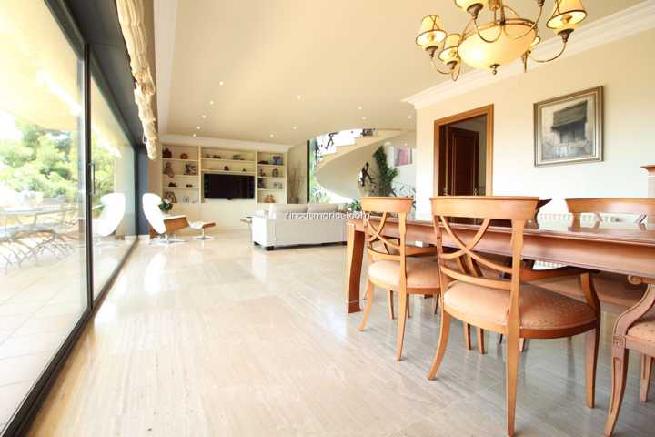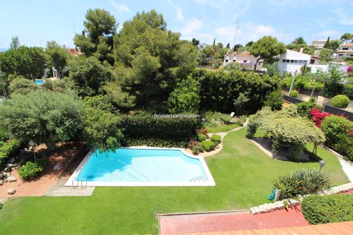 Espectacular casa con magnÍficas vistas al mar y todo Sitges. La casa de 413m2 construidos se dividen en tres plantas, con una parcela de 1000 m2. ...La planta principal de 150 m2 útiles se distribuye en un amplio recibidor que da acceso al gran salón- comedor de 65 m2 con una impresionante cristalera de punta a punta con vistas al mar y Sitges y acceso directo a la preciosa terraza 30 m2 y sus vistas. También cuenta con una cocina de gran tamaño de 20 m2 útiles y una zona a parte de lavadero. Habitación doble con armarios empotrados y baño completo con ducha. La primera planta de 115 m2 se distribuye en un dormitorio doble con baño completo, la suite principal con baño completo con bañera hidromasaje y ducha y zona de vestidor y acceso terraza con vistas. También cuenta con otro espacio, actualmente un gran despacho, pero es perfecto para otra sala de estar o un dormitorio doble con terraza. El sótano de 165 m2 se distribuye en un gran espacio para 4 o 5 coches, gimnasio, despacho, trastero y sala de maquinas. Des de el garaje se puede acceder directamente al gran jardín de 700 m2 con vistas y a la piscina privada. Impresionante jardín con todo lujo de detalles. Situación idílica en Vallpineda, cerca del colegio británico y el gimnasio Club Natación. A tan solo 5 minutos en coche del centro de Sitges y cerca del transporte publico.[IW] Show more