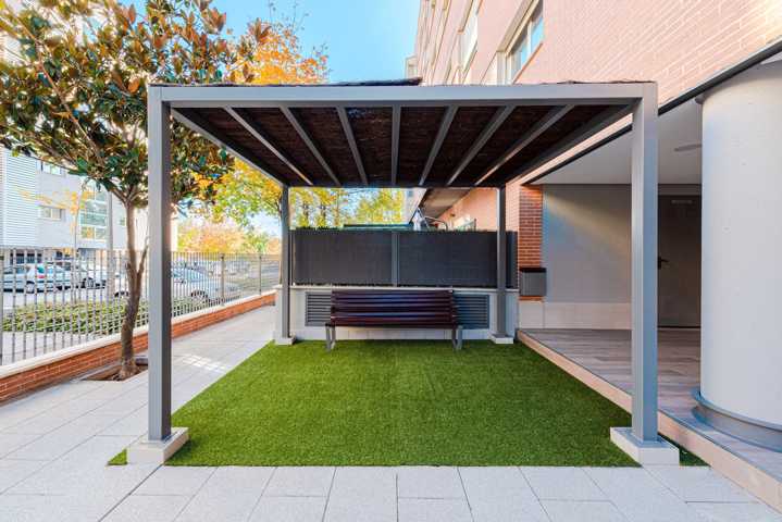 En una tranquila zona residencial de Madrid, junto al parque Juan Carlos I y al parque El Capricho. Con rápido acceso por Paseo de la Alameda de Osuna y Avenida de Logroño y multitud de servicios como restaurantes, comercio, colegios, servicios médicos, parques, etc.