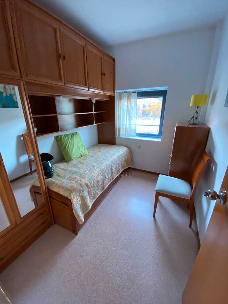 La zona de noche se compone de dos dormitorios, ambos exteriores, uno doble y otro individual amplio. Completa este espacio un baño completo con bañera.