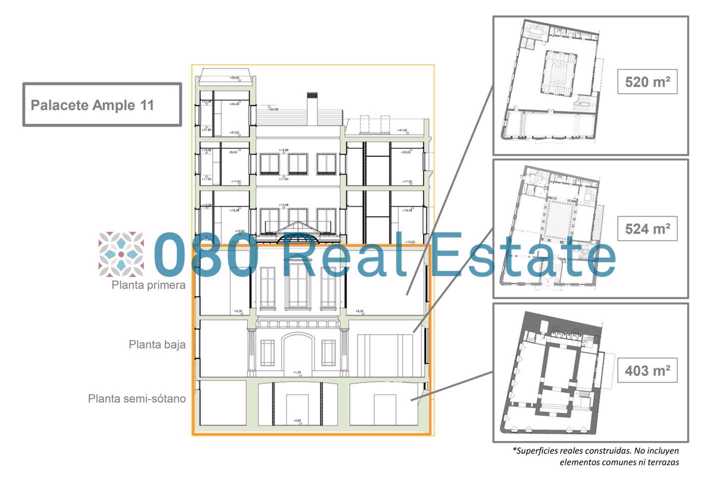 El palacete de más de 1.500 m², cuyos elementos ornamentales se han restaurado, convivirá con un edificio de 35 viviendas de alto standing y otro local, dividido en dos plantas, con un total de 418 m².