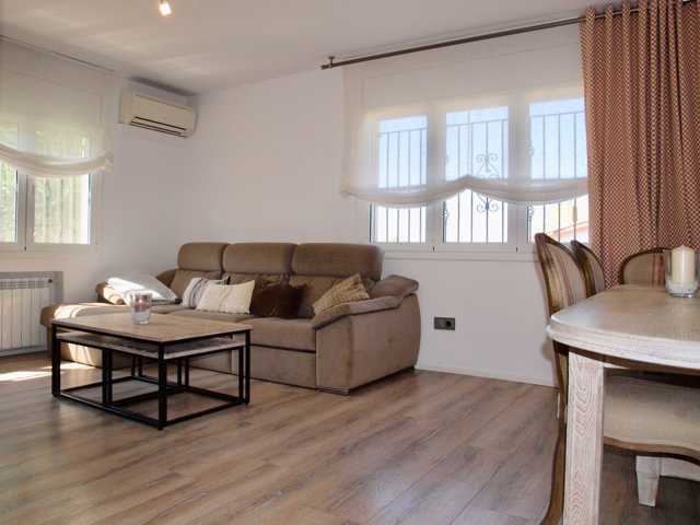 Casa totalmente reformada compuesta de salón comedor en el que encontramos chimenea cerrada con hierro forjado, aire acondicionado y acceso directo a ...la terraza y jardín de la casa.