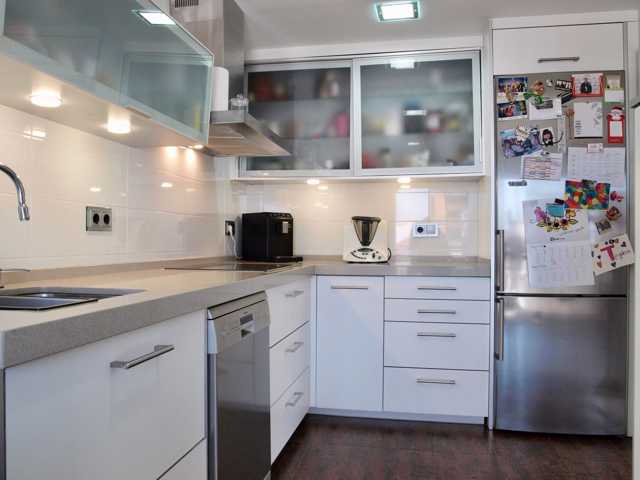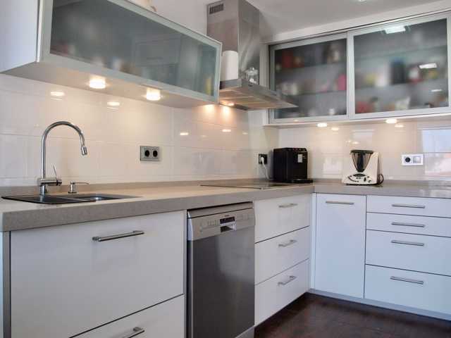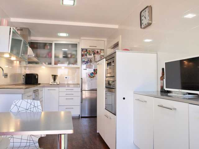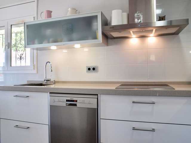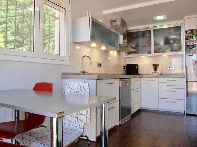 Cocina ofice totalmente reformada y con equipamiento de diseño, zona de comedor y acceso directo a la zona de jardín y barbacoa.