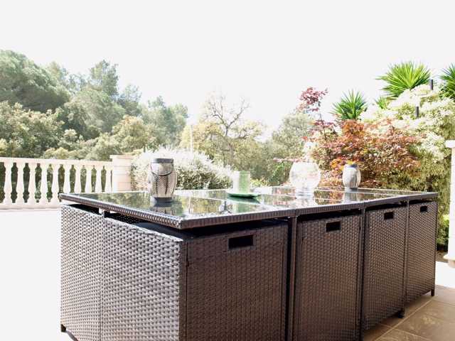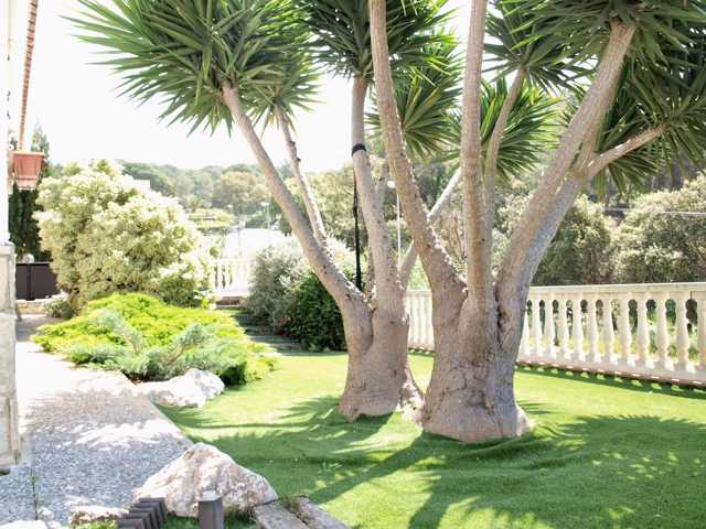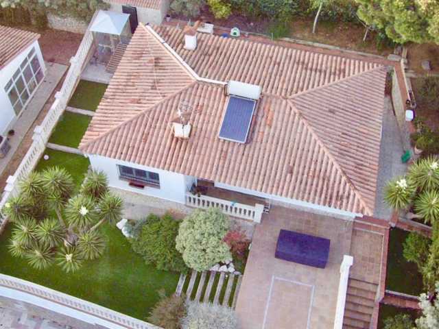 Parcela con terraza, jardín y zona de barbacoa.