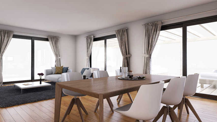 Precio Casa terminada INCLUYE - Proyecto de ejecución y dirección de obra. - Estructura de la casa: muros de carga, divisorias y tejado. - T ...ransporte en tráiler hasta parcela. - Montaje completo con tejado de cerchas de madera. - Cimentación para terreno llano y firme que permite hacer losa de 30 cm. - La impermeabilización del tejado con paneles sandwich (tejado plano) y con teja cerámica para modelos de 2 aguas. - Suelo de parqué. - Puertas mdf color blanco. - Baño completo con sanitarios y cerámica puesta en zonas húmedas. - Ventanas con persianas en medidas estándar (hasta 140 cm de ancho y 210 cm de alto) doble acristalamiento pvc color blanco (resto de colores a consultar). - Acabados interiores en pintura blanca. - Acabados exteriores con mortero acrílico transpirable y pintura blanca. - Instalaciones de electricidad y fontanería según normativa. - Acs con aerotermia con acumulador de agua de 110 l. - Climatización con bomba de calor-frío aerotérmica por conductos. - Muebles de cocina. NO INCLUYE - Iva. - Licencia de obras, tasas municipales, consumos, boletines. - Acera perimetral, pavimento exterior, terrazas, pérgolas y otros elementos exteriores. - Conexiones generales de luz, saneamiento, agua, que deberá concertar el cliente con la empresa suministradora. - Trámites posteriores a la obtención del certificado de final de obra relativos a la legalización y registro de la construcción (cédula de habitabilidad, 1ª ocupación, certificado de descripción del edificio, declaración de obra nueva, libro del edificio, etiqueta energética fase proyecto y fase final, alta en el catastro, etc). - Permisos de corte de calles, gestión de residuos, contenedores, retirada de tierra al vertedero. - Vallado de finca, puerta/s de entrada. - Vallado frontal. - Ventanas y ventanales con las medidas superiores de ancho 140 cm y altura 210 cm. Show more