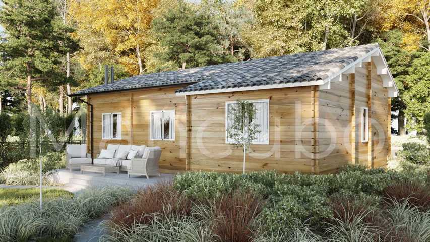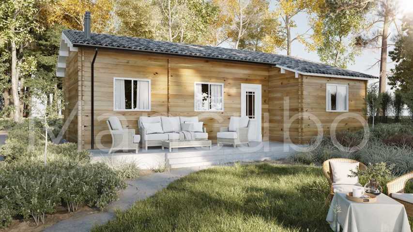 Dimensiones exteriores: 10 x7.2 m Superficie interior : 63 m2 Grosor de pared: 44mm Altura de la pared: 230 cm Altura total: 320 cm Grosor de s ...