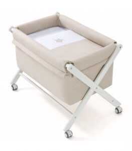 Cuna o Moisés ligero, con 4 ruedas para su fácil traslado con sistema de bloqueo.