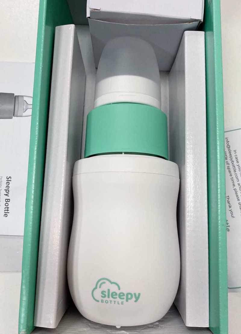 Set de inicio para la preparación de biberones, probablemente, más rápida del mundo. El paquete inicial de Sleep ...y Bottle consiste en un biberón con tetina (talla M durante 2-6 meses) y una tapa, un accesorio con un recipiente integrado para alimentos para bebés y un calentador de biberones. Esto calienta el agua fría a 37 °C en 30 a 40 minutos, exactamente a una temperatura agradable para beber para los bebés. Una vez que se alcanza esta temperatura, se mantiene permanentemente con bajo consumo de energía.