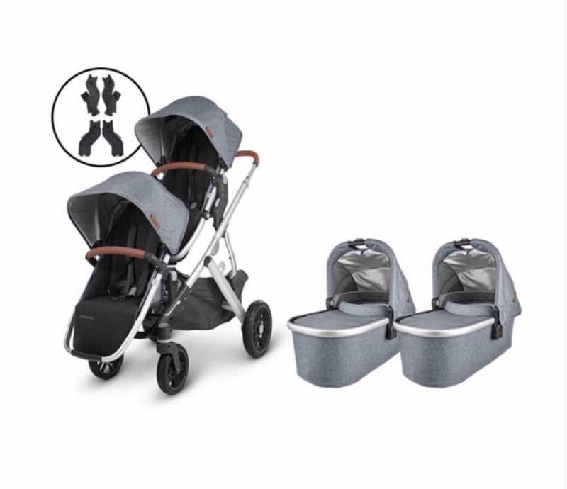 Este pack incluye lo siguiente: 1 Chasis Vista V2 2 Capazos 2 Sillas 2 pares de adaptadores para la conversión a gemelar 2 burbujas de lluvia ...