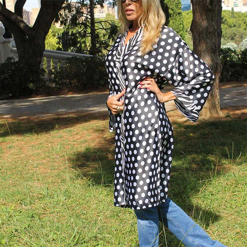 Diferentes largos Puedes llevarlo abierto a cerrado, tipo caftán o vestido, o sobre ...otras prendas, para ir más vestida o sport, versatilidad para usarlo.