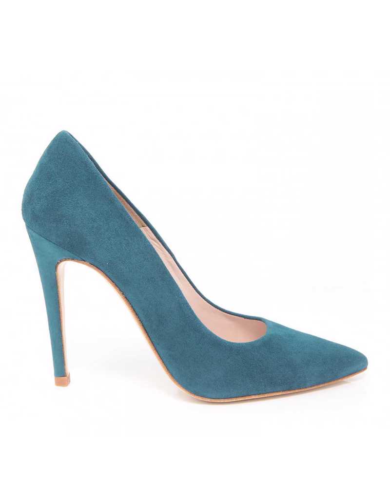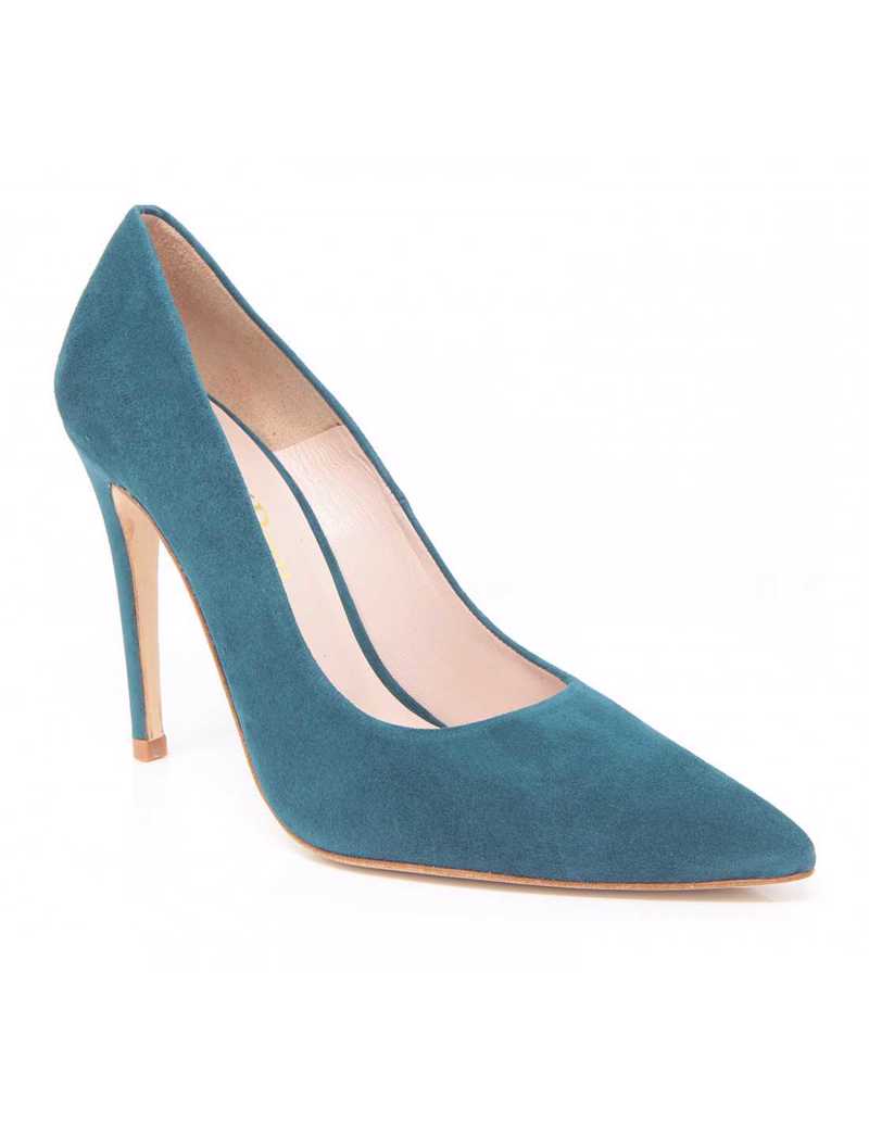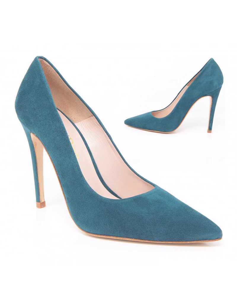 Stiletto en ante verde petroleo con tacón de 10 cm