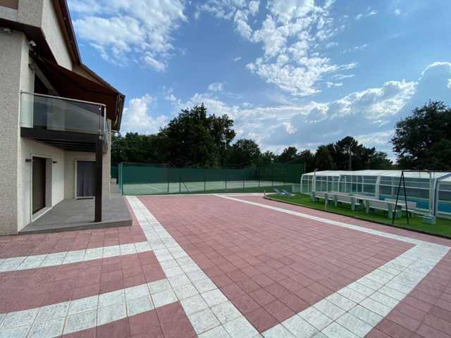 Planta baja: ... 3 habitaciones (una de ellas suite y con vestidor), 2 baños, salón-comedor, cocina independiente y zona de lavandería. Esta planta cuenta con acceso directo a la terraza, piscina y pista de tenis.
