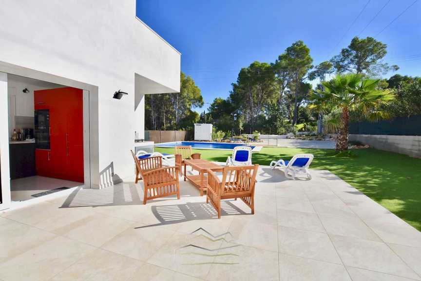 Villa Moderna a la venta cerca de la Playa del Arenal de Javea, esta maravillosa propiedad en una calle sin salida y con vistas al Montgó. Cuenta con ...una parcela llana de 1000 m2 y 224 m2 construidos en dos niveles. En planta baja encontramos, suite principal con vestidor y baño en suite, lavadero, aseo de invitados, amplio salon comedor con cocina americana, amplios ventanales dan acceso a la soleada terraza. En planta primera, encontramos 3 habitaciones dobles con armarios empotrados y todos con salida directa a terrrazas privadas, dos baños, esta propiedad ofrece aire acondicionado en todos los ambientes, construccion del año 2020 con todo el lujo y confort necesario. El espacio exterior incluye zona de barbacoa, un baño con ducha y una piscina con bar, perfecta para disfrutar del clima mediterráneo. Parking para 2 coches. A pocos minutos de todos los servicios y comodidades, lo que la convierte en un lugar ideal tanto para la comodidad como para el relax. No pierdas la oportunidad de poseer esta hermosa villa en la codiciada zona de la playa del Arenal.Mostrar más