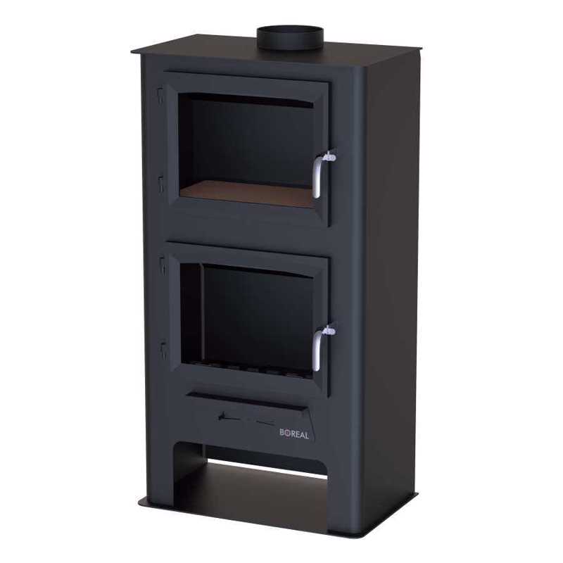 Estufa de leña con horno de 7 kW, con puertas y parrillas en fundición. Manetas en acero inoxidable. Con regulación del aire de combustión primario. A ...pta para calefactar un volumen de 175 m3. Incluye sistema de cristal limpio. Dimensiones H-A-F: 1060x570x353 mm ECODESIGN