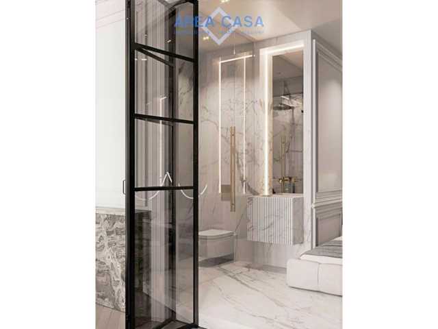 - 1 cuarto de baño completo, integrado aplacado de mármol italiano calacatta y grifería de cobre fundido.)