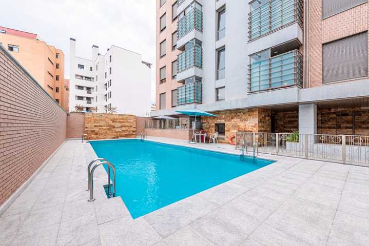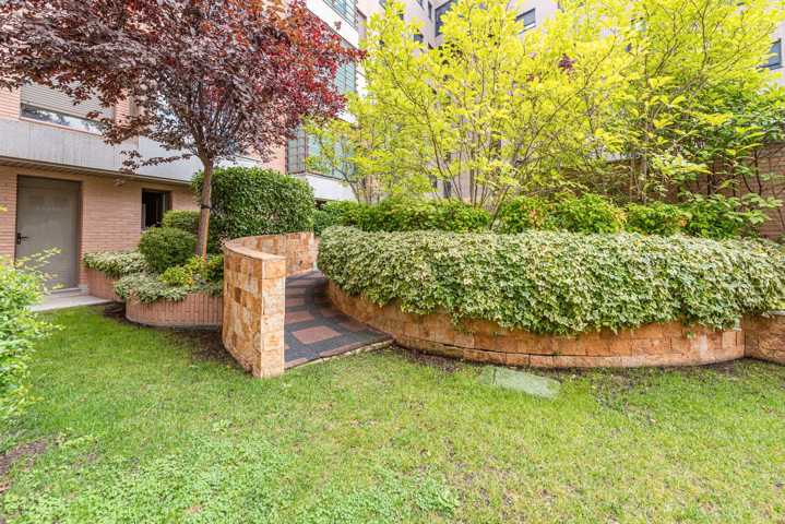 Urbanización privada con servicio de portería, amplias zonas comunes ajardinadas, piscina exterior.