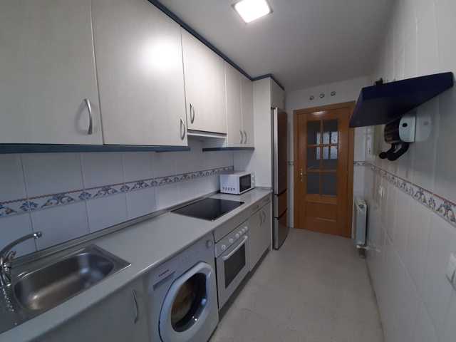 Consta de salón con terraza cerrada, cocina independiente amueblada y equipada con electrodomésticos, terraza tendedero, baño completo con ventana y dormitorio amueblado.