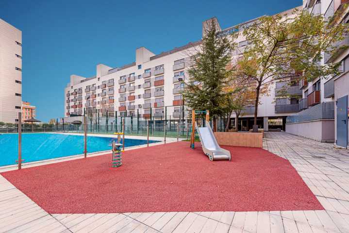 Urbanización privada con servicio de portería, amplias zonas ajardinadas, piscina exterior, pista de pádel, zona de juegos infantil y salón social comunitario. Plaza de garaje y trastero incluidos en el precio.