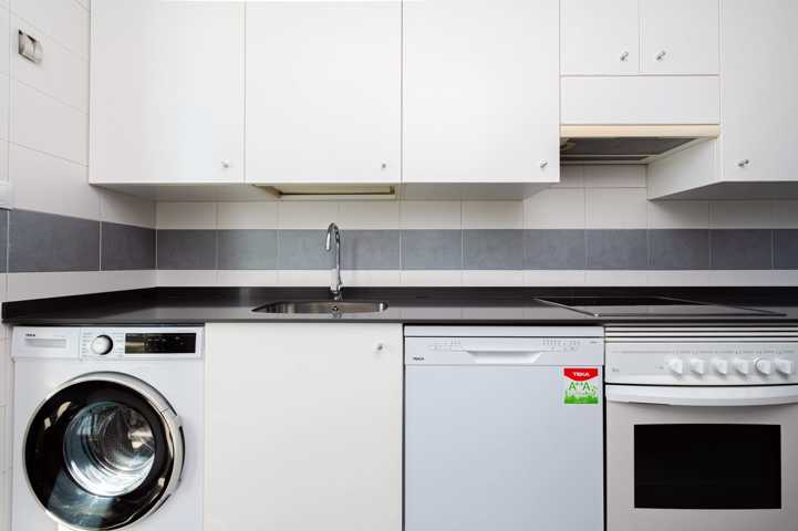 a cocina está totalmente equipada con electrodomésticos de primeras marcas: frigorífico, lavadora, lavavajillas y microondas.
