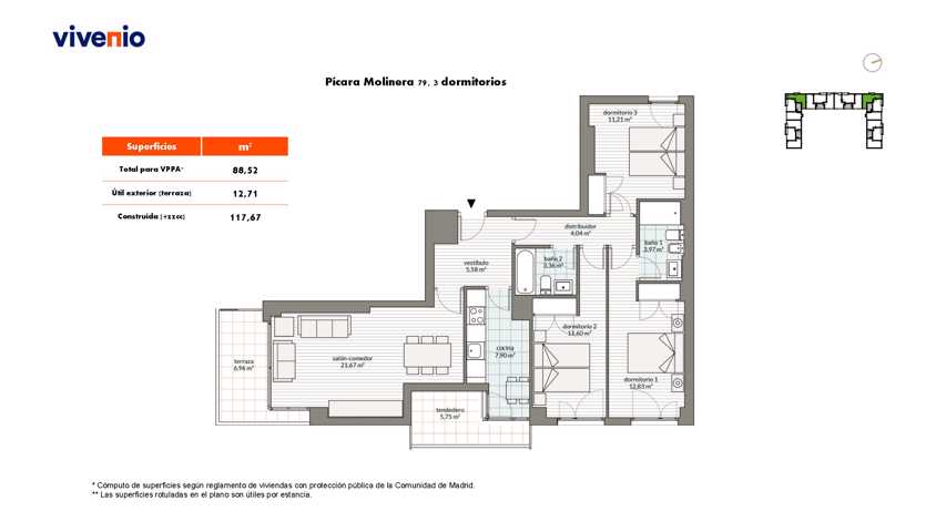 •Climatización central (contadores individuales) en todas las estancias.