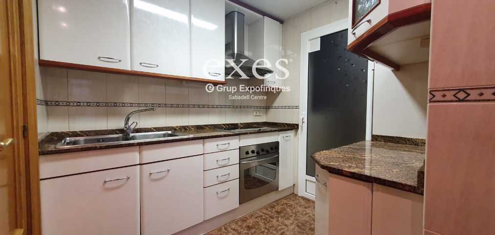 EXES SABADELL CENTRE ofrece este fantástico piso de 85m² con un gran balcón y unas vistas espectaculares. Se distribuye en salón comedor de 26m² con s ...alida a balcón, con cocina independiente y reformada con galería, 3 habitaciones (1 doble y 2 individuales), baño con bañera. Carpintería interior de madera, carpintería exterior de aluminio y suelos de parquet y gres. Piso sin muebles. Plaza de parking incluida en el precio. Finca con ascensor.