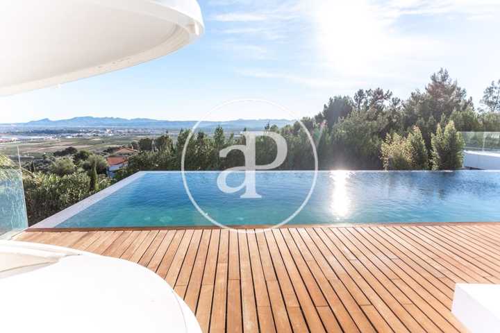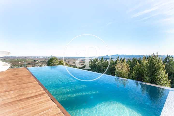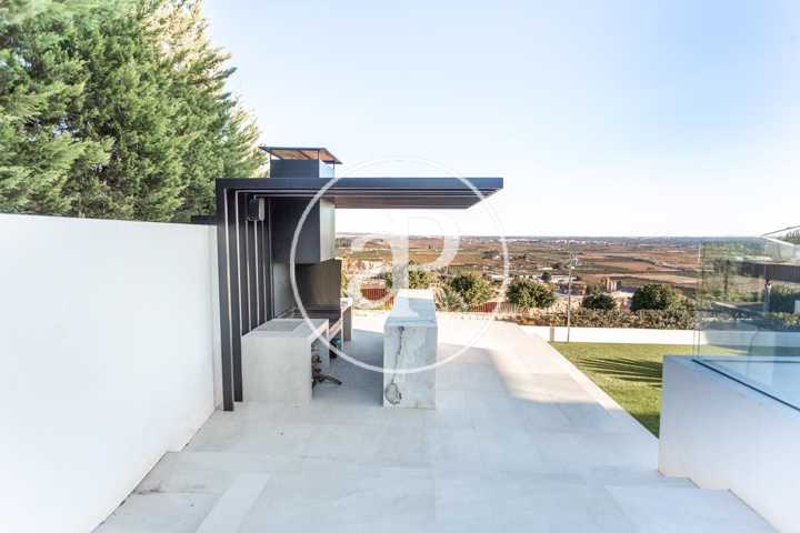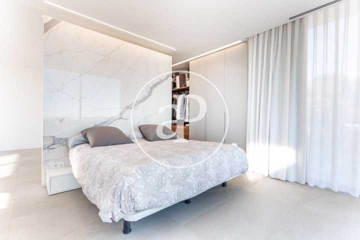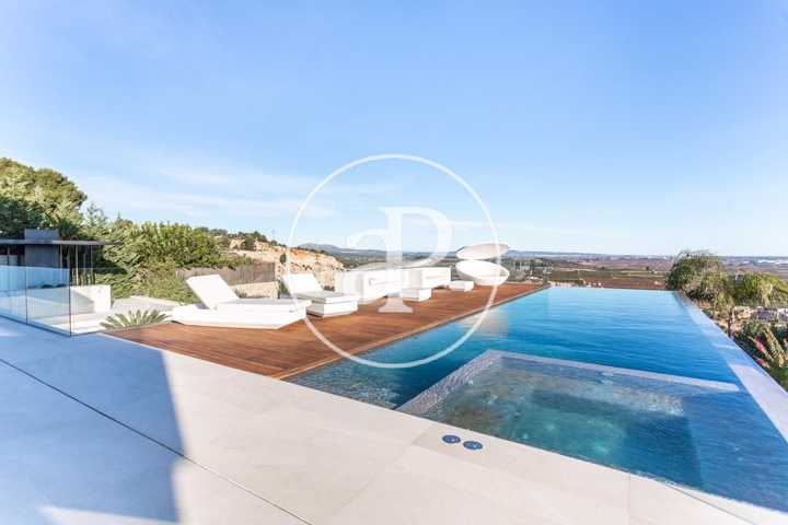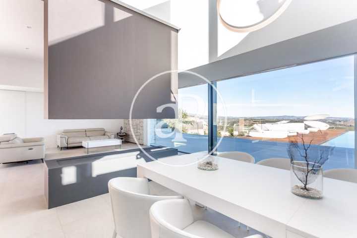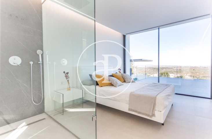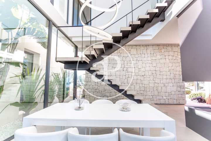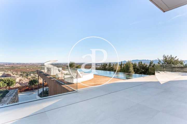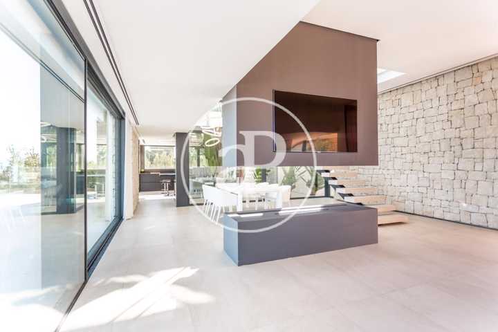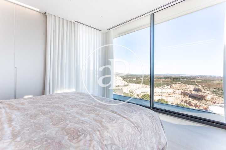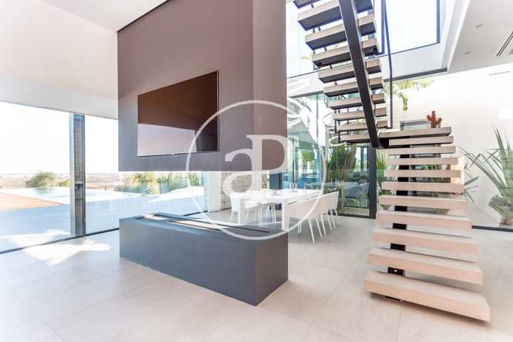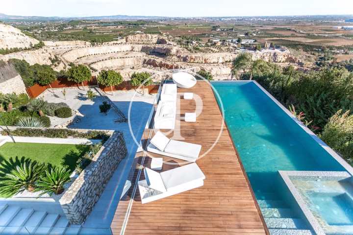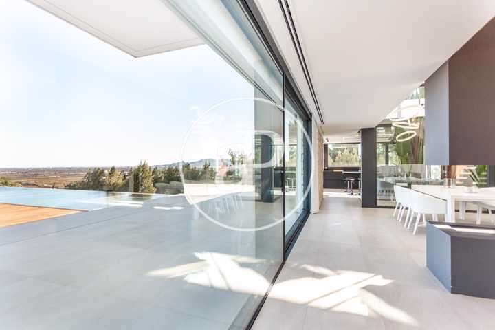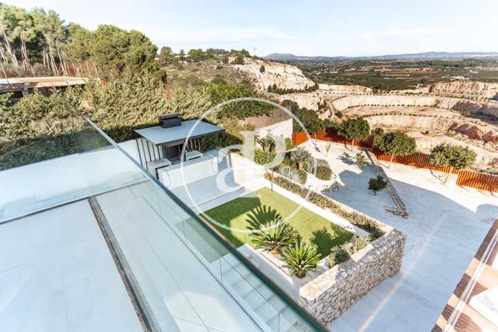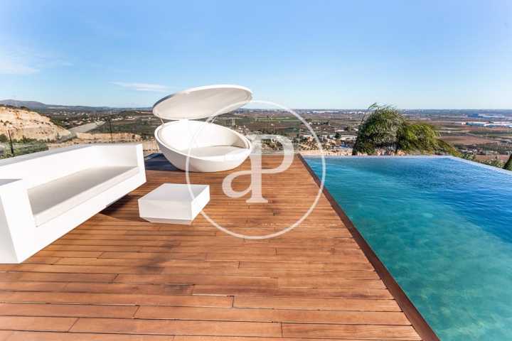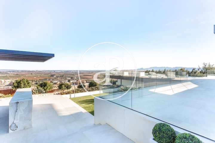 Alquiler de chalet con arquitectura de diseño, situado en la parte más noble de la Urbanización San Cristóbal, en Alberic. Una construcción de dise ...ño Vanguardista, desde la entrada principal accedemos a la vivienda, por una pasarela cruzando el jardín delantero. Quedando en la derecha una zona cubierta para dos vehículos y parking para invitados. La parcela con jardín de diseño, esta provista de plantas y árboles estratégicamente ubicadas y orientadas, para crear armonía en el paisaje, todo ello rodeado con materiales de marmolina en 2 tonos y con un sistema de iluminación indirecta de Led, en las zonas de escaleras, terraza, piscina, jacuzzi, barbacoa y toda la estructura del edificio. Siempre cuidando la estética y el diseño del entorno natural. Este chalet, tiene vistas panorámicas y tiene una estudiada construcción, aprovechando al máximo las 4 orientaciones. En la planta principal, tenemos el Salón Comedor, 3 habitaciones, 2 baños completos uno de ellos en suite y una cocina equipada, con acceso a una zona independiente de lavandería y una estancia con barbacoa interior. Entre el comedor y la cocina, se encuentra un jardín interior encristalado a dos alturas, que deja ver una elegante escalera de diseño contemporáneo al vuelo, con un sistema de iluminación Led por sensores, y una lampara de diseño en doble altura. Por ella, accedemos a la primera planta, donde encontramos la Suite principal, con vistas panorámicas y donde podremos disfrutar de preciosos amaneceres. Además, desde la Suite, tenemos acceso a una terraza privada. La cama tiene su apoyo en una pared divisoria, con un vestidor modular, de amplias posibilidades de distribución y almacenaje. Desde el se accede a un innovador y elegante baño completo, con doble seno, bañera al aire y ducha de masaje, con vistas. En la planta principal tenemos una moderna cocina con isla totalmente equipada, con electrodomésticos paneleados de las mejores marcas (Siemens), dispone de Vinoteca, campana extractora integrada en la encimera de inducción. A continuación, entre la zona de comedor y el salón, tenemos un separador de ambiente de diseño, que tiene en su parte inferior una chimenea artificial, y en la superior, una zona con soporte automático, con brazo extensible y giratorio, hasta 180º, para la gran pantalla de televisión. Toda la estancia está acristalada, lo que hace que sea muy luminosa, cálida y confortable. Desde los grandes ventanales de seguridad motorizados, accedemos a la zona de terraza, piscina, jacuzzi, y barbacoa exterior con barra iluminada. La terraza principal de unos 110 m2, se encuentra en línea con el salón comedor, al mismo nivel encontramos también el acceso al jacuzzi y la piscina infinita de agua salina, que dispone de un sistema de limpieza Net and Clean, por Neolisis. Sistema de piscina Astralpool. Desde la zona exterior, tenemos acceso a otra planta inferior de vivienda a nivel de suelo de parcela, tenemos 150 m2 de zona diáfana ideal para juegos, zona de cine, gimnasio, zona para invitados etc. Y detrás un baño completo para el exterior. Resumen de primeras calidades y características especiales. Todas las cortinas son motorizadas y automáticas. Ventanales de seguridad. Suelo radiante / aire acondicionado frío/calor por conductos. Barra de la BBQ en Onix, material retroiluminado. Sistema musical exterior Rotell music extremer. Hilo musical independiente, para cada uno de los baños. Iluminados con luz indirecta de led. Alicatados y pavimentos de Porcelanosa, sanitarios y grifería de la línea NK Porcelanosa. Armarios empotrados, para todas las estancias y armarios de cortesía. Depuradora química independiente. La vivienda dispone de placas solares, instalación de Sistema de Aerotermia, descalcificador de agua, los cerramientos de doble cristal y carpintería de aluminio Cor Vision y Cor Vision Plus, con rotura de puente térmico, y la orientación para aprovechamiento de la luz solar al máximo, todo esto hace que sea una vivienda bioclimática, concienciada con el medio ambiente, muy rentable energéticamente y por eso dispone de una certificación energética B+. La urbanización dispone de seguridad 24h los 365 días del año y servicio de conserjería, las 4 puertas de acceso a la urbanización, se cerrarán en horario invierno/verano, teniendo que entrar por la puerta principal de conserjería. Se encuentra a 40 min de la playa y a 5 minutos del pueblo de Alberic, cercano a todos los servicios y muy cerca de los grandes centros comerciales y colegios como el British School de Xàtiva y Alzira con servicio de trasporte hasta la misma urbanización. Mostrar más